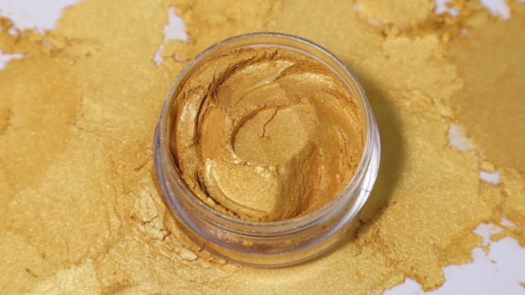 Pigmen Pearlescent Kilau Emas , dilapisi dengan titanium dioksida dan oksida besi, direkayasa untuk memberikan hasil akhir yang berkilau dan reflektif. Kombinasi unik dari pelapis ini memungkinkan pigmen untuk menghasilkan spektrum warna emas - dari efek satin lembut dalam ukuran partikel yang lebih kecil hingga emas yang lebih intens dan berkilau dalam ukuran yang lebih besar. Tapi bukan hanya kualitas estetika yang membuat pigmen ini menonjol; Begitulah sifat -sifat ini mempengaruhi tekstur dan konsistensi kosmetik seperti yayasan, highlight, eyeshadows, dan produk bibir.